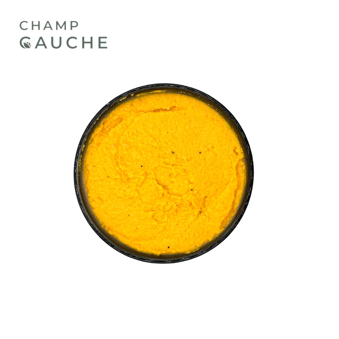 INGRÉDIENTS : Courge, pois chiche, tahini (huile de sésame), eau, huile d’olive, vinaigre de cidre de pomme, flocon de piment broyé, ail, cumin moulu, sel, poivre